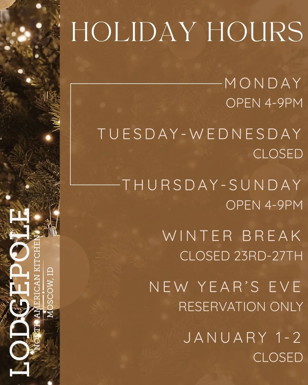 Larger groups, please email for availability or inquire about The Lounge at Lodgepole