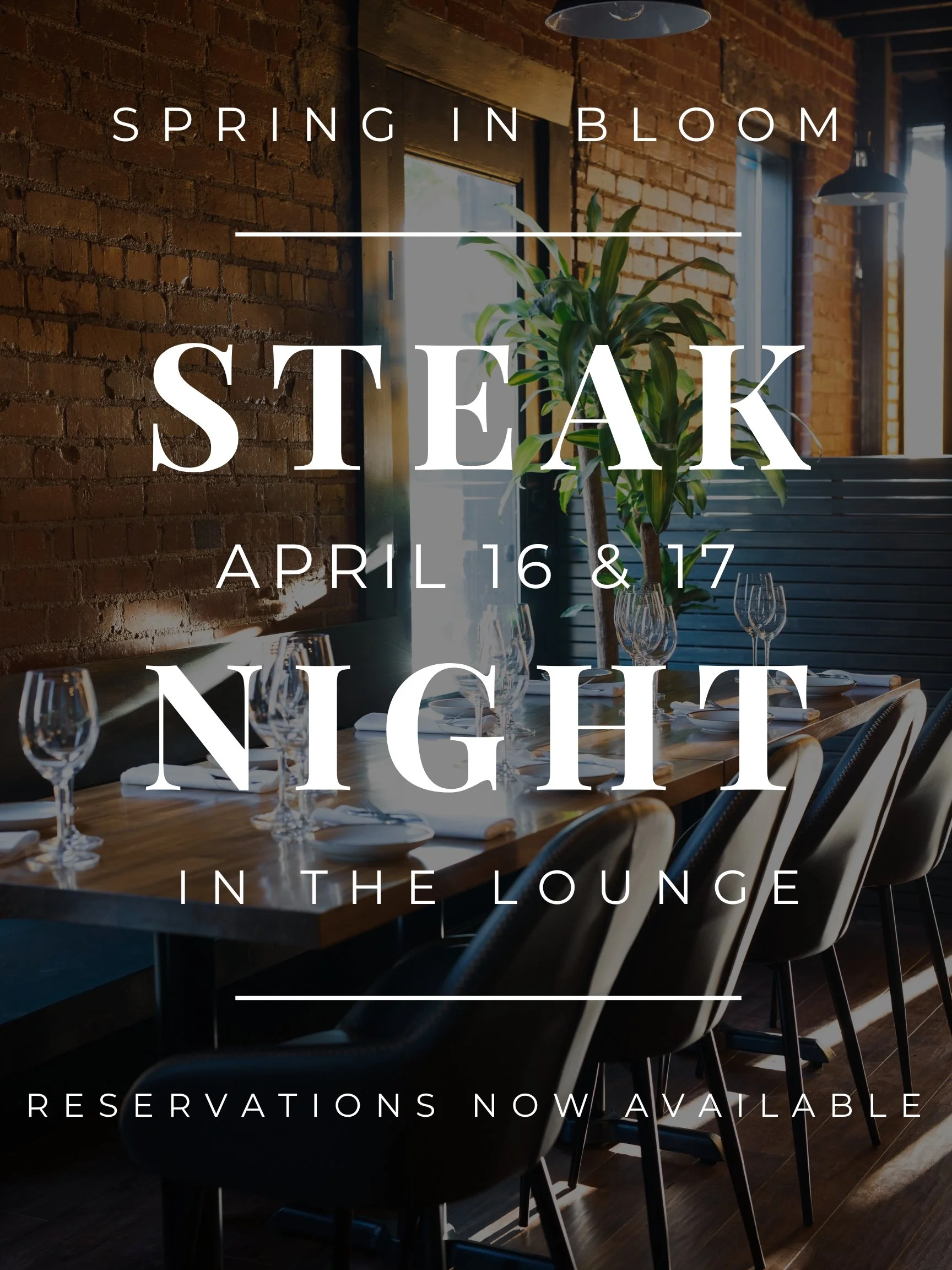 Begin with a fresh seafood starter, followed by a dry-aged porterhouse for two paired with seasonally inspired steakhouse accompaniments, then move into a bright, springtime dessert to finish